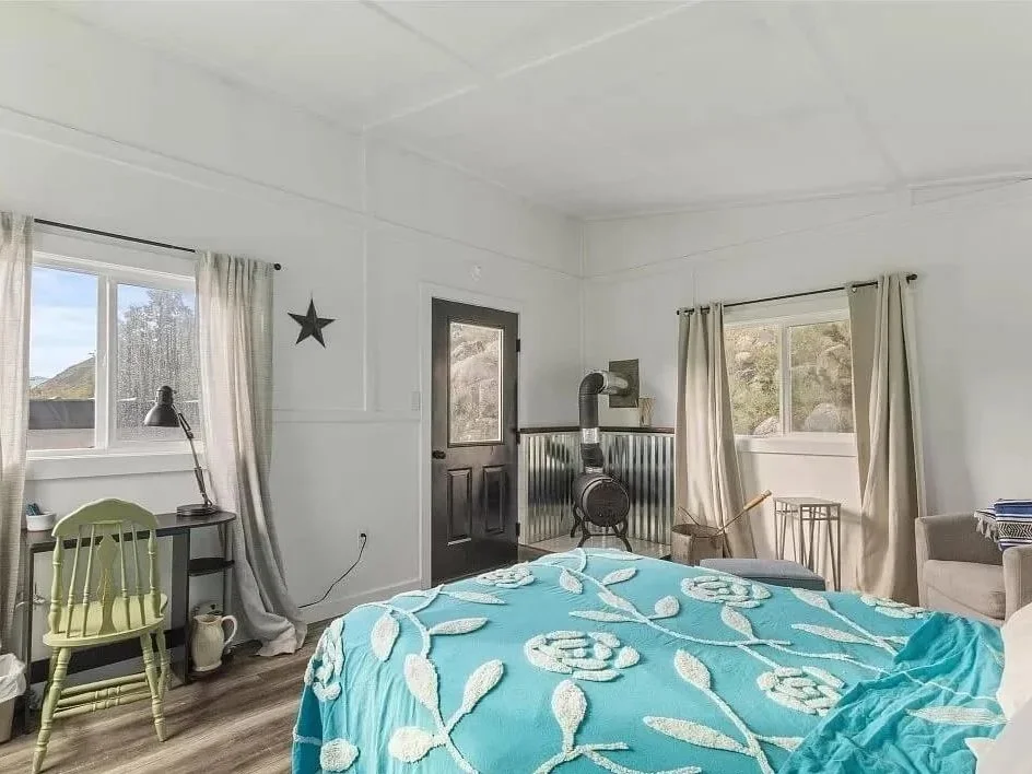 Kitchenette: In the cabin’s main living area, we added a small kitchenette and air conditioning to make the space more comfortable and functional. To do this, we’re removing an old wood stove that was incredibly charming, but not practical for renters.