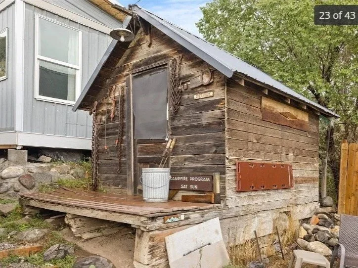 According to the listing, this rustic building was formerly a working ranger hut inside Yellowstone National Park and was relocated to the property years ago, bringing a piece of the park with it. The classic park signage, the weathered wood, and the undeniable historic charm made it feel like it belonged in Yellowstone, and we loved it.